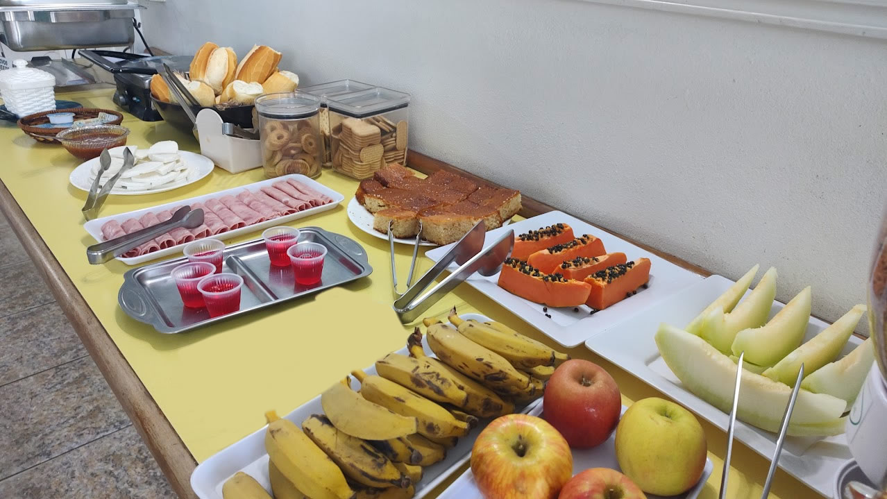 O dia começa com um excelente café da manhã. Nosso buffett self-service você encontrará vários itens, como: bolos, pães, biscoitos, queijos, frios, produtos naturais e sucos. A grande maioria dos produtos é feita no próprio hotel. Todos os dias cuidamos do preparo utilizando ingredientes fresquinhos e de excelente procedência, tudo feito com carinho, concedendo aos alimentos aquele gostinho todo especial sem perder o toque mineiro.